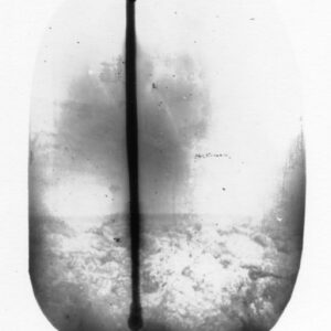 De foto’s maakte ik met een camera uit 1922 en zelfgemaakte glasnegatieven. De rechter foto is een belichting van 2 minuten, tijdens de belichting boze in opstand komende Warffumers, landelijke filmploegen die door het beeld heenliepen, bewaking voor de minister, het is de vage donkere vlek, links in beeld. De linker foto is een opname van het gesprek dat de minister voerde met een selectie vooraf doorgelichte inwoners, de belichting duurde 12 minuten. Heel vaag is er nog een vorm van een hoofd te zien, aan de onderzijde van het raam, maar mensen zijn niet te zien. Ach, het is toch gebakken lucht.